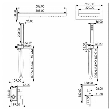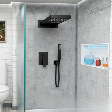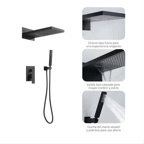 Ducha Regadera Cuadrada Color negro 25cm +Tubo