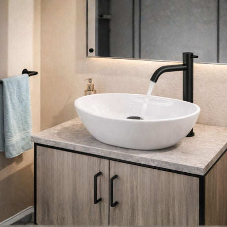Grifería Poste Alto Negra para Lavamanos - Agua Fría, 1/2" Universal