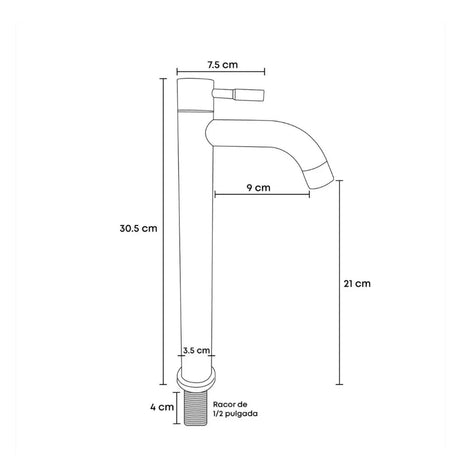 Monocontrol Lavamanos Alto Cascada Acero Inoxidable 304 28 cm Altura Diseño Premium Baño Moderno