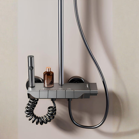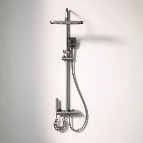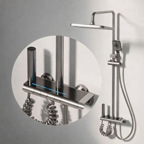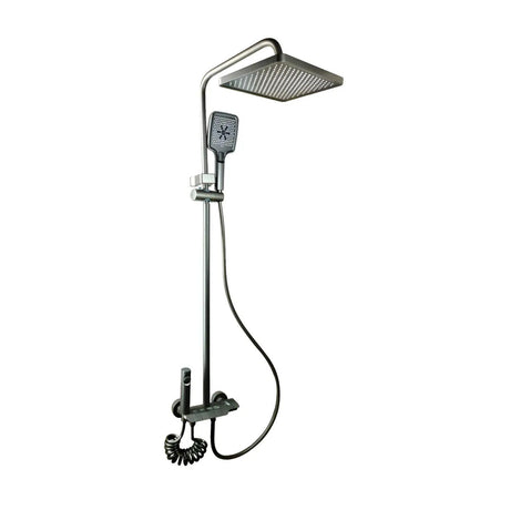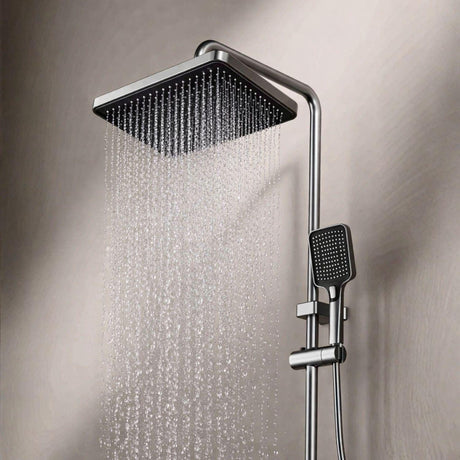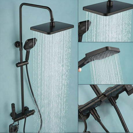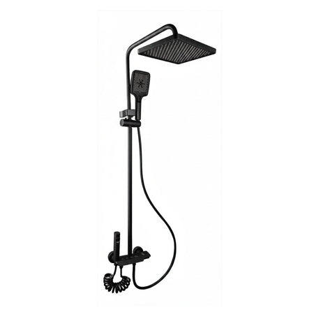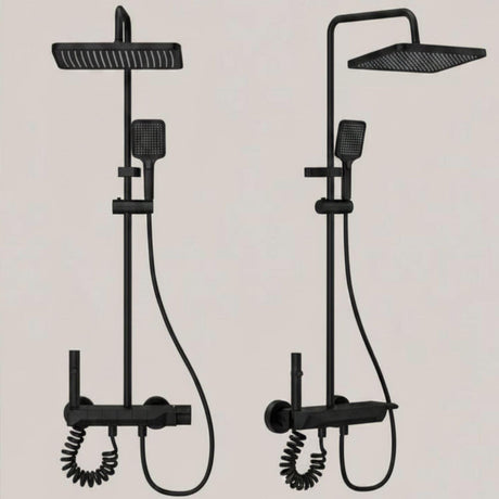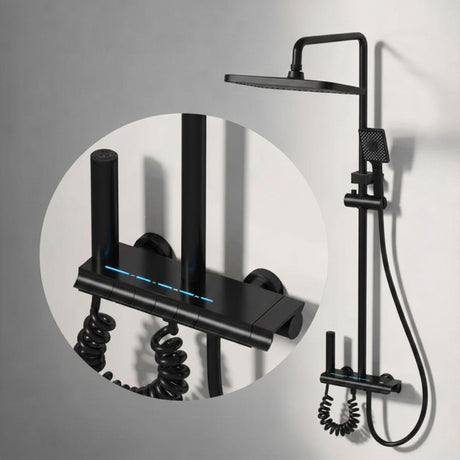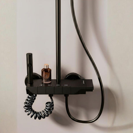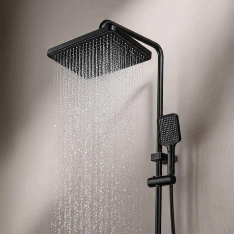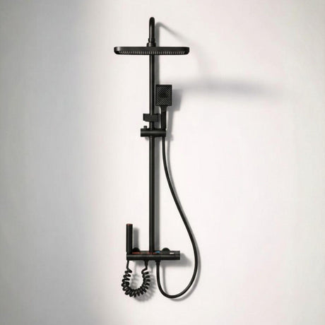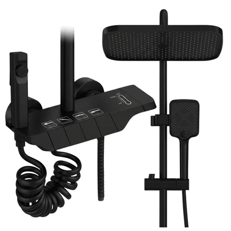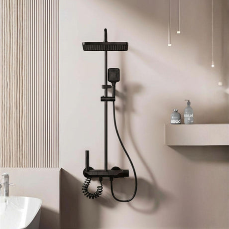 Torre de Ducha Tipo Piano Negra Mate con Teleducha y Cabezal | Columna de Ducha Monocomando Moderna
