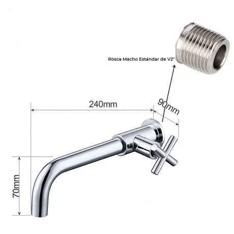 Griferia Llave Lavamanos De Pared, Metálica de Alta Calidad Satinada.