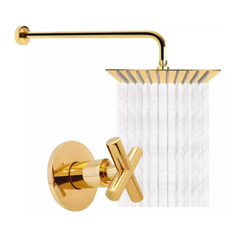 Conjunto Griferia Ducha Dorada Cruceta Lujo