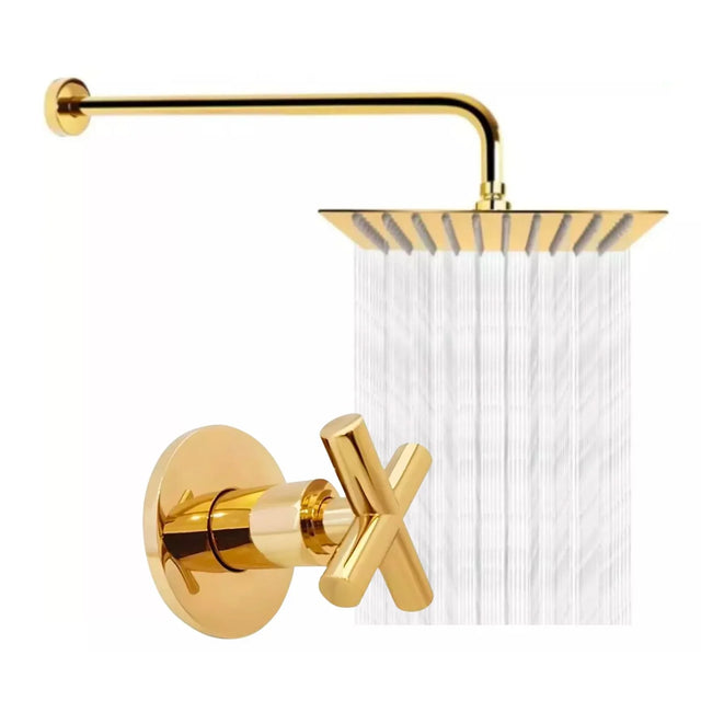 Griferia Ducha Sencilla Dorada con Regadera 20 cm