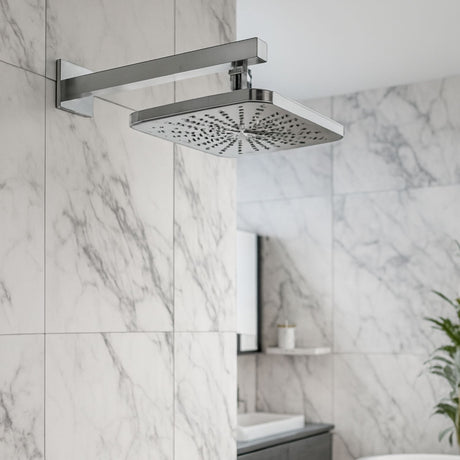 Regadera Cuadrada inoxidable de Lujo 20 cm con tubo Cromada
