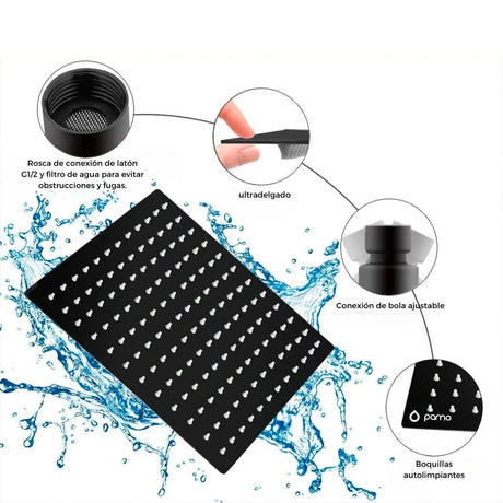 Precio normal $70.277 COPPrecio unitario /Solicitar en chatDucha Negra Rectangular Multichorro