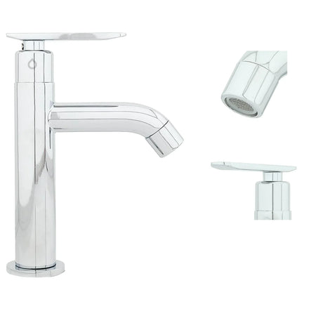 Llave Lavamanos Base Cilíndrico Curvo Manija Antioxidante