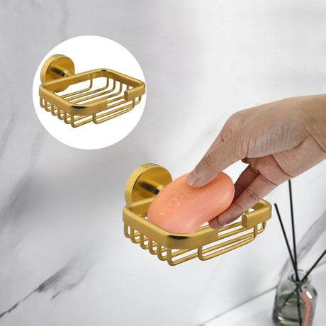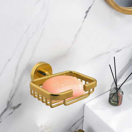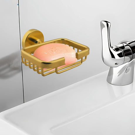 Jabonera Tipo Canasta en Aluminio de Alta Calidad - Acabado Dorado