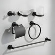 Juego accesorios baño Singolo x 6 acabado negro mate, diseñado para lograr un ambiente elegante, uniforme y funcional. Cada accesorio combina estructura metálica resistente con detalles en vidrio esmerilado, ofreciendo durabilidad, estética moderna y excelente desempeño en el uso diario.