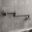Llave muro plegable Tessuto diseño moderno gris concreto, ideal para cocina o zonas de trabajo donde se requiere optimizar espacio sin sacrificar resistencia ni estética. Su estructura en acero inoxidable SS304 garantiza durabilidad, higiene y un funcionamiento suave en uso continuo.