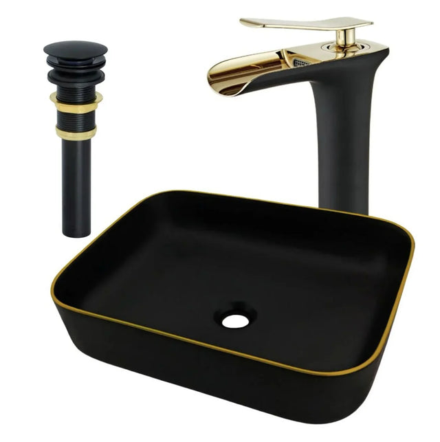 Kit Lavamanos y griferia Oro-Negro de Lujo