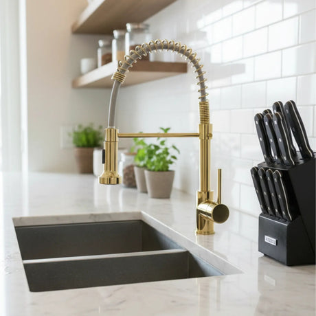 Precio de venta $411.848 COP Precio normal $497.698 COPPrecio unitario /Solicitar en chatGriferia Cocina Monocontrol Flexible Dorada Gourmet 52 cm