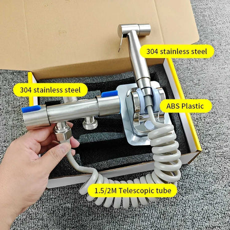 Grifo para Inodoro con Válvula Angular de Doble Salida en Acero Inoxidable Bidet