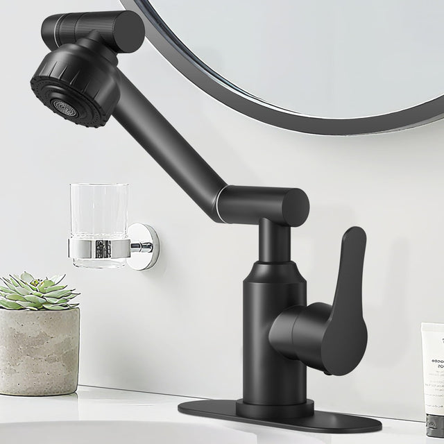 El diseño giratorio 1080° incorpora tres puntos de rotación independientes que permiten una movilidad total. Esta función práctica facilita orientar el chorro de agua hacia cualquier dirección sin esfuerzo, mejorando la limpieza del lavamanos y evitando salpicaduras. Su brazo articulado se ajusta fácilmente, adaptándose a diferentes alturas y usos, lo que la hace perfecta tanto para lavamanos pequeños como amplios.