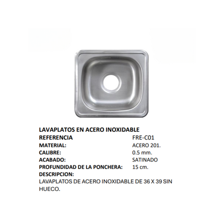Precio normal $800.247 COPPrecio unitario /AgotadoSet Lavamanos Plataforma Acero Inoxidable 30x32cm Pared + Desague