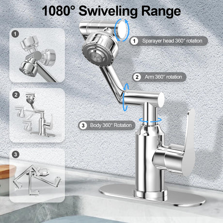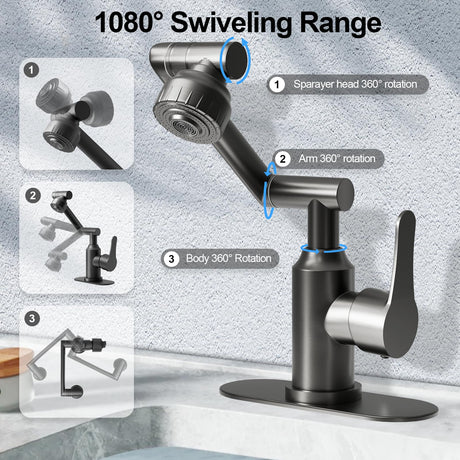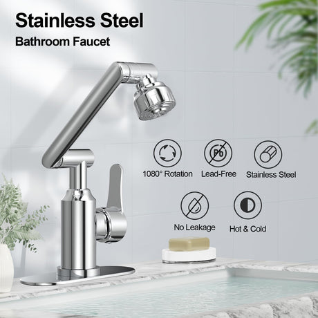 Precio normal $19.557 COPPrecio unitario /AgotadoGriferia Lavamanos Monocontrol 1080° Giratoria Acero Inoxidable